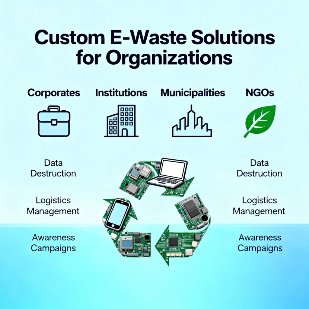 We offer customised solutions, including data destruction, reverse logistics, and awareness campaigns to ensure safe and responsible e-waste handling.